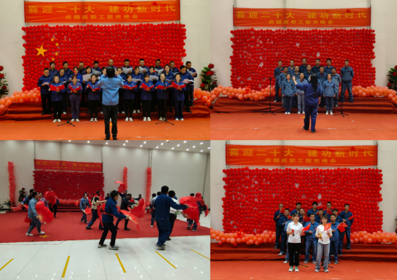 公司雖然處于疫情封閉管理的狀態(tài),但絲毫沒有影響干部職工踴躍參與的熱情,公司各單位積極報(bào)名、組織排練,為晚會(huì)順利召開奠定了堅(jiān)實(shí)的基礎(chǔ)。同時(shí)在集團(tuán)工會(huì)等多方協(xié)調(diào)幫助下購(gòu)買了晚會(huì)道具。值得一提的是,干部職工用600余個(gè)紅色氣球鋪設(shè)了紅色國(guó)旗背景墻,用心表白祖國(guó)。
