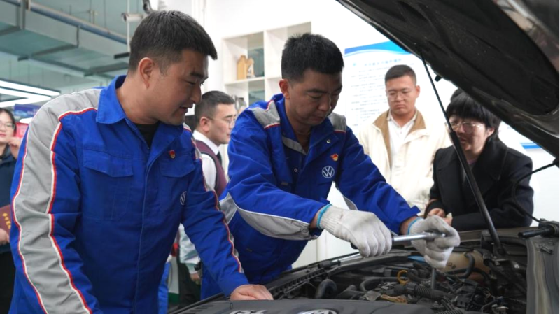 在汽車維修現(xiàn)場,汽貿(mào)公司“售后服務(wù)黨員突擊隊(duì)”為交通運(yùn)輸學(xué)院老師的車輛做了全方位、專業(yè)的汽車保養(yǎng)售后服務(wù)。一張“檢查安全維護(hù)十二項(xiàng)”的保修單就是公司開展“上門服務(wù)”的“清單”,逐一列上了車輛維修保養(yǎng)的詳細(xì)內(nèi)容和對客戶的承諾,還幫助客戶將以后用車中的注意事項(xiàng)做了全面梳理。由于這次服務(wù)對象,都有一定的汽車專業(yè)性知識儲備,所以在邊做維修服務(wù)的同時(shí),工匠們與老師們交流了各品牌車輛的保養(yǎng)、檢測、改裝等方面的內(nèi)容,對今后的工作方向有了新的思考。