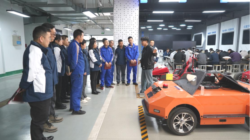在參觀汽車專業(yè)實(shí)訓(xùn)中心時(shí),交通運(yùn)輸學(xué)院汽車系智慧互聯(lián)專業(yè)老師為支部黨員進(jìn)行了精彩的現(xiàn)場授課。大家積極請教,互動(dòng)交流,了解了智慧互聯(lián)交流與共享的新型模式,對生活和工作帶來便利和智能化體驗(yàn)等內(nèi)容。在場認(rèn)真聆聽的“物產(chǎn)工匠”石學(xué)林對近期將與高校老師組隊(duì)參加“西部陸海新通道建設(shè)全國引領(lǐng)性勞動(dòng)和技能競賽”,有了新的啟發(fā)。下一步,校企雙方將會(huì)對“優(yōu)服務(wù)、壯產(chǎn)業(yè)”技能競賽項(xiàng)目進(jìn)行深入的研究和探討,做到交流“不斷線”,學(xué)習(xí)“不停步”。