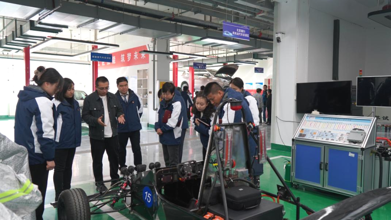 在參觀比亞迪E5純電動(dòng)車實(shí)訓(xùn)區(qū)時(shí),大家看到了學(xué)院2023年全國行業(yè)職業(yè)技能大賽二等獎(jiǎng)作品的技術(shù)“含金量”,饒有興趣地了解了繪圖-備材-制作-成型的具體過程,以及對轉(zhuǎn)動(dòng)、逃生、行駛、焊接、拆裝、車架與車身的測試。高校的科研成果凝聚了工匠精神傳承和“惟專惟精、匠人匠心”的人才培養(yǎng)理念,在提升職業(yè)道德修養(yǎng)、增強(qiáng)專業(yè)技術(shù)能力、發(fā)展創(chuàng)新創(chuàng)業(yè)能力等方面全面融入了工匠精神培育。在場的黨員仔細(xì)觀摩,向創(chuàng)作單位投以敬佩的眼光。雙方在“工匠精神是培養(yǎng)高素質(zhì)技術(shù)技能人才的目標(biāo)導(dǎo)向,是推動(dòng)產(chǎn)教融合、校企合作的重要實(shí)踐途徑”達(dá)成共識。