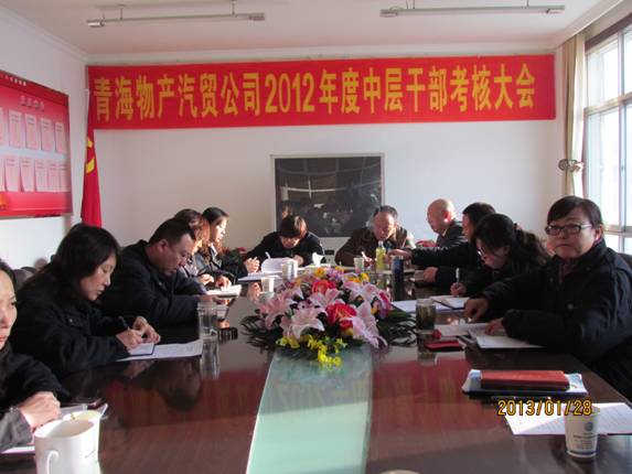 2013年1月28日,青海物產(chǎn)汽貿(mào)公司召開了2012年度中層干部考評會議,公司領(lǐng)導(dǎo),各部、海東分公司負責(zé)人,公司中層副職和重點崗位、骨干員工代表共28人參加了會議。會議由黨支部書記黃曉梅主持,總經(jīng)理張宏民做了重要講話。